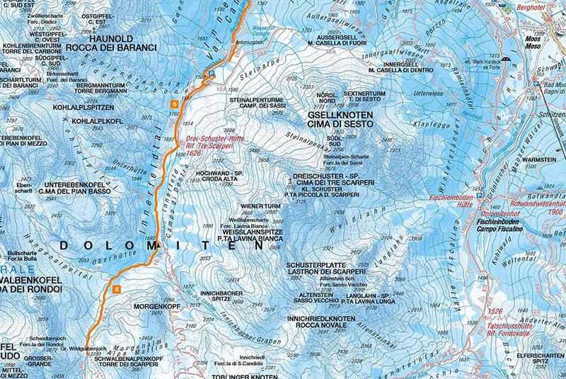 In macchina oppure pullman andiamo fino al bivio per la Valle Campo di Dentro. Dal parcheggio si segue l’evidente strada che porta al rifugio Tre Scarperi. Dal rifugio si prosegue rimanendo nel fondovalle sul sentiero con segnavia n. 10–11–105 fino al termine della valle Campo di Dentro. Presso una tabella commemorativa si va a destra seguendo il segnavia n. 10–11 per terreno che si fa più ripido, e si giunge al limite del bosco. A quota 1900 m circa, presso un grosso masso si prosegue a sinistra verso il passo Grande dei Rondoi. La prosecuzione della salita dipende da una accurata valutazione delle condizioni del manto nevoso. Si raccomanda di salire al passo tenendosi principalmente sul versante sinistro della valle. Questa parte della gita è caratterizzata da un paesaggio di una bellezza indescrivibile: si è circondati da altissimi picchi dolomitici, da massicci come la Croda dei Rondoi, i Tre Scarperi e le Tre Cime di Lavaredo! Discesa: per la via di salita.